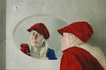 2008Het schilderij van Marjolie is een dubbelportret doordat ook haar spiegelbeeld is geschildert. De kijker ziet hierdoor hoe Marjolie zichzelf ziet.